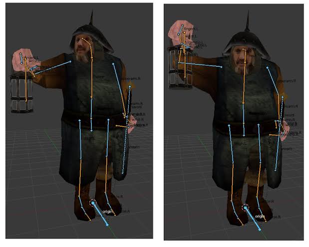 Se crea una representación simplificada del cuerpo del personaje, análogo a un esqueleto o a un stickman. En personajes humanos y animales, muchas partes del modelo de esqueleto corresponden a la ubicación real de los huesos, pero la animación del modelo de esqueleto skeletal animation es también utilizada para animar otras cosas, como expresiones faciales.